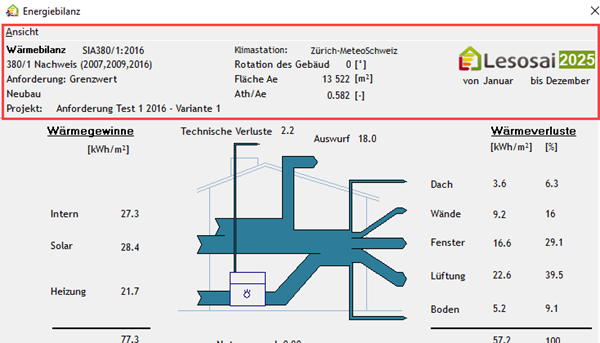 - Lesosai wurde für SIA384.201 getestet, mit Beispielen aus SIA 4009