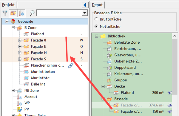 - Möglichkeit, alle Schickten eines Bauteil direkt „aus dem LCA herauszunehmen“