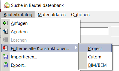 A) Löschen Sie die „Projekt”-Konstruktionen: